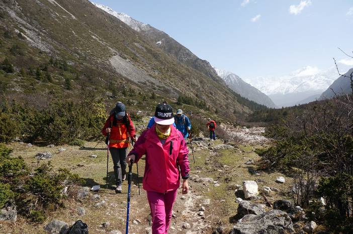 子梅垭口的风很大,很寒,很快就会穿透你的冲锋衣,因此一般不会多呆,半小时后便乘车下至山下子梅村休息。