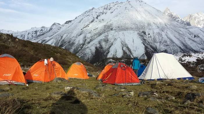盘盘山营地就在两岔河上面的盘盘山上面。距离虽不远,却是极其虐人的。(高海拔爬坡不比平原,上过高海拔的朋友都知道)