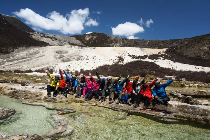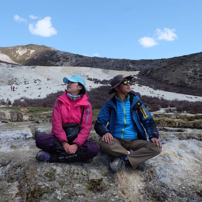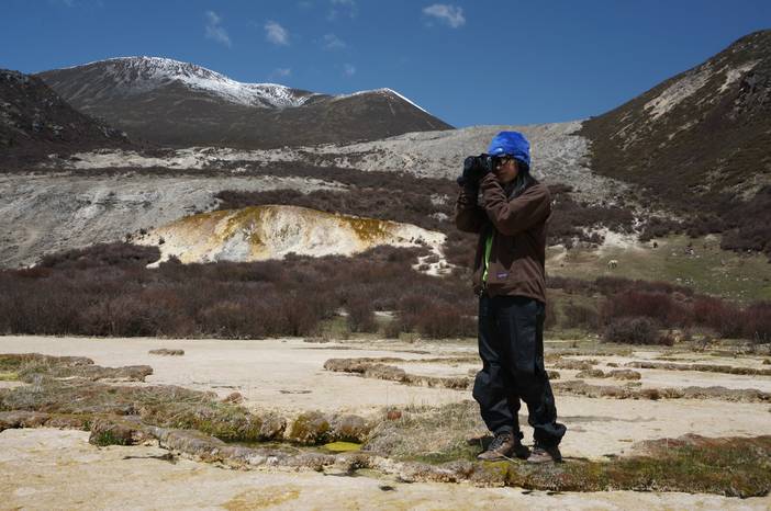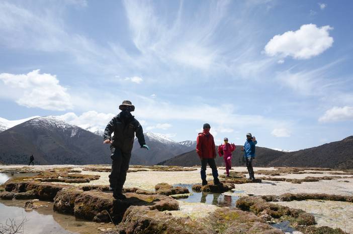 和客栈老板道别后就乘车到泉华滩去,泉华滩,号称小黄龙,是规模不大的一个钙化池,本不在行程之内,因顺路,也就安排在内了。