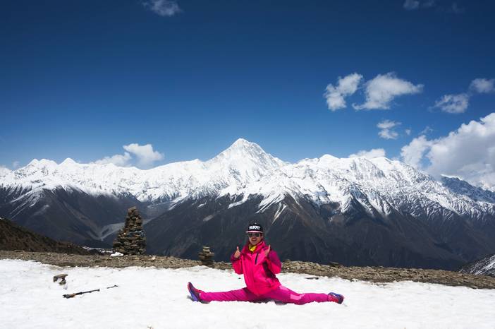 想要看到贡嘎并非易事,除了这个地理位置以外,天气因素是最大的障碍,或大雾,或雨,都会让贡嘎消失,而咱们,明显运气不错,于是,各种摆拍开始了。