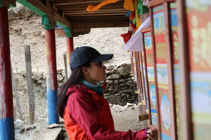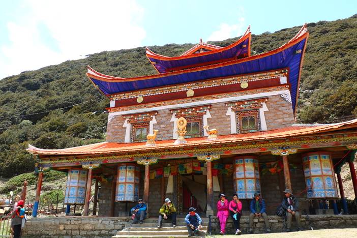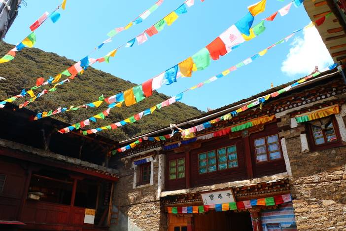 子梅之后便前往有着700多年历史的贡嘎寺。贡嘎寺是贡嘎西南线登山的必经之路,也算是大本营之所在,加之以建立于神山密林之中,更为其披上了一层神秘的色彩。