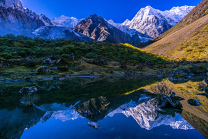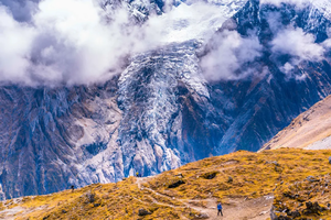 早上,吃过早饭出发。沿着小河向着雪山前行,之后海拔逐渐上升,远处的雪山露出全貌。穿越森林,跨过山石,芒框腊卡峰完全展现在眼前。经过一个废旧牛场,通过木桥,爬上山坡,奶日顶卡及其衍生冰川迎面而来。向着雪山继续前进,很快便可到达坡均营地。今天行程较为轻松,作为调整适应。营地正面就是梅里雪山北坡,奶日顶卡冰川、来日贡卡、奶日顶卡、芒框腊卡一览无余。雪山冰川、白云蓝天、河流草甸……悠然惬意,今天徒步路程较短,可以慢慢享受这山间的细风和阳,记录下美好的风景。