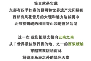 1交通:不包含各地到达西双版纳集合、西双版纳散团的往返大交通费用(如:机票和高铁火车票等)。