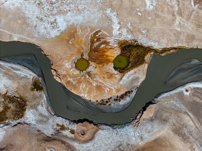 第一站前往木吉火山口。在新疆最西部阿克陶县木吉乡的帕米尔高原上,有一座似梦幻一般的山谷。它就是有“帕米尔之眼”之称的木吉火山,全名喀日铁米尔火山群。柯尔克孜语,意为“喷发”。1500年前的火山喷发留下冰与火的幻境,与十八罗汉雪峰摇摇相守。虽然它是很久以前喷发的,但目前仍保留着透明的冰川、清澈的冰蚀湖、深不见底的冰洞、甘甜的冰川雪水。在整个卡日铁米尔境内,拥有着大大小小13处火山口,他们之间相互交错,高低错落,形状各异,以它们独特的造型和不同的地质色彩,向人们讲述着一千年前这里发生的故事。
