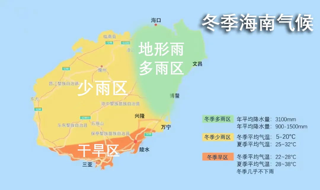 尽量避开海口-文昌一带的冬季多雨阴冷区