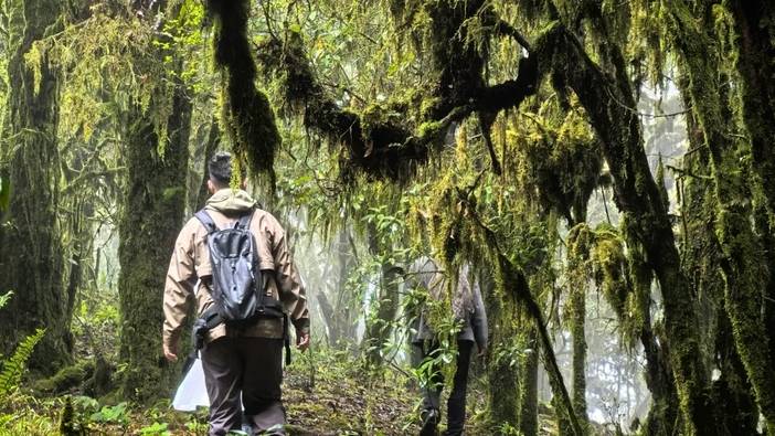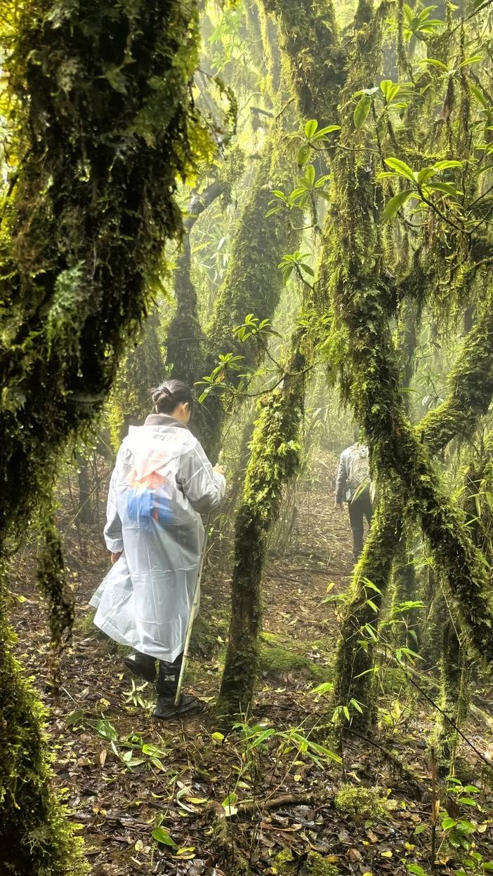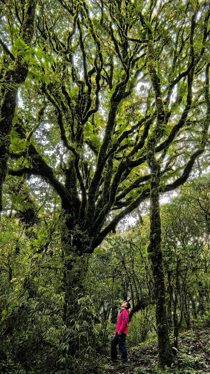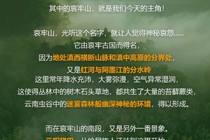 今天早起看堪称“滇中云海一绝”的哀牢山云海日出。秋冬季节,随着气温的逐渐降低,山间常常弥漫着浓厚的雾气。清晨,随着太阳慢慢升起,哀牢山中晨风追逐云雾,云雾描摹山脉,连绵的远山与奔腾的云海相依相偎,一动一静间,变化万千,演绎云海奇观。适时集合,前往今天的徒步起点,今天是此行的重头戏——徒步穿越哀牢山。这座横亘在云贵高原边缘的古老山脉,以其独特的地理风貌、丰富的生物多样性和深藏的古老传说而闻名遐迩。来到丛林边,抬头望去,茂密的原始森林中,古木参天,藤蔓缠绕,蕨类苔藓,漫漫迷雾......这未被现代文明触及的“幽谷秘境”,不就是传说中的云南虫谷的入口?怀着忐忑的心情,我们走进“虫谷”,眼前的一切令人震撼:巨大的古木上缠绕着奇异的藤蔓,地面上覆盖着厚厚的落叶,偶尔能看到一些未知生物留下的痕迹,让人不禁遐想这里是否还隐藏着未被发现的秘密,是否还隐藏着远古时代的生物与文明。幽谷,奇石,树木,苔藓,清泉,美景,神秘,好奇,这里的一切,引领着我们不断深入探索这片秘境。徒步结束后,我们驱车前往墨江,入住酒店。