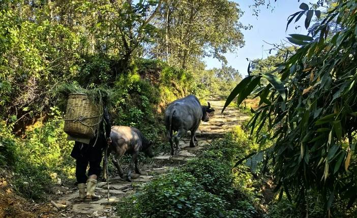 早餐后,出发前往哀牢山。途中我们经过新平嘎洒,这里是中国花腰傣最大的聚居地,也是花腰傣文化保留得最为完整、最为集中的地方,素有“中国花腰傣之乡”美誉。我们在这里用午餐,感受花腰傣的美食文化。之后继续乘车前往南恩瀑布。“南恩”在傣语中,指银白色的水流。银色的水花、陡峻的山崖,一眼望不到顶的瀑布,何其壮观。面对南恩瀑布时,会忍不住感叹“飞流直下三千尺,疑是银河落九天”的“写实”。游览后乘车前往哀牢山徒步起点,开始徒步。走进峡谷,峡谷中的幽暗神秘,肆意生长的小草树木,树枝青石上的蕨类苔藓,耳边回荡的虫鸣鸟叫,让人感觉瞬间被带入了云南虫谷。在这里徒步,大家在不断地惊叹中打卡拍摄,徒步结束后,前往哀牢山中酒店入住。