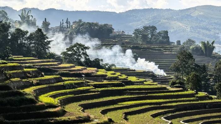 早餐后驱车前往哀牢山南段的最具标志性景观——元阳梯田。徒步走进被誉为“大地雕塑”的梯田,田埂狭窄而陡峭,每一步都需小心翼翼。沿途中,哈尼族人民,或弯腰赶鸭牧牛,或挥汗如雨地耕作,一千多年过去了,哈尼族人民仍然对这片土地如此的热爱与执着。进入哈尼村寨,“森林、水系、山寨、梯田”构造了完整的生态。传统的哈尼族蘑菇房,土石成墙,干草为顶,古朴实用。在这里跟哈尼族的老乡聊天,跟上下学的哈尼族小朋友打趣,这无疑是一段有趣的人文徒步。徒步结束后,我们游玩坝达景区,在这里俯瞰万亩梯田如千层金阶直通天际,云海翻涌时宛如仙境。感叹农耕文明的奇观,欣赏这自然与人文景观的完美结合。之后便是看元阳梯田日落的最佳时间哦!当夕阳缓缓西沉,金色的阳光斜洒在层层叠叠的梯田之上,每一块田地都像是被精心镶嵌的金色鳞片,闪耀着温暖而耀眼的光芒。结束后,我们前往酒店入住。