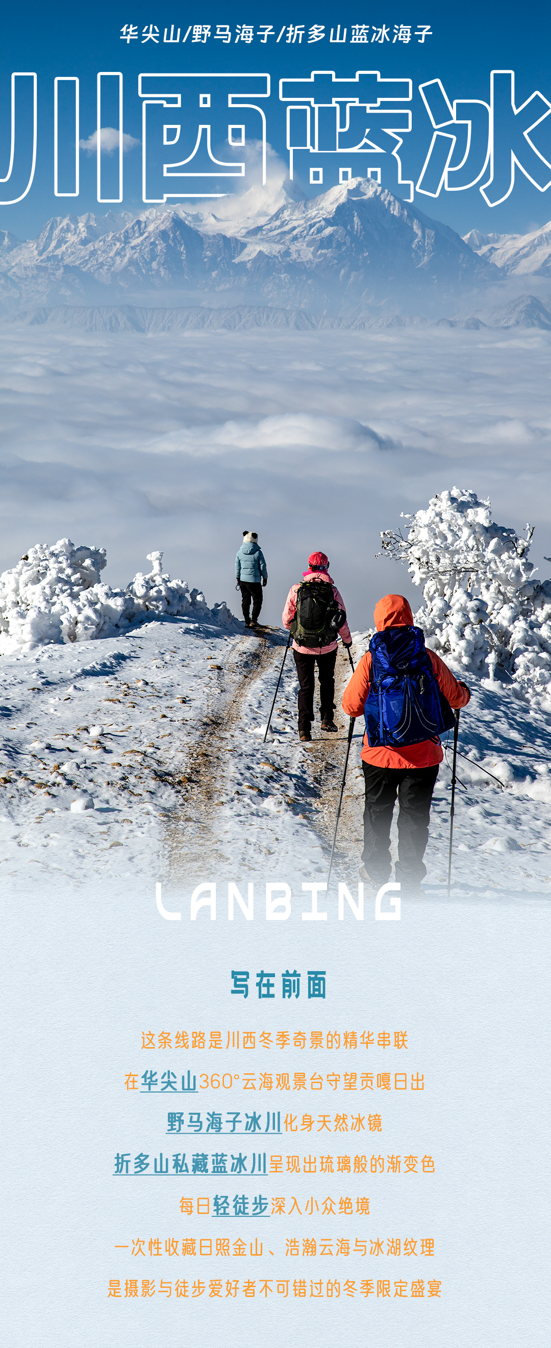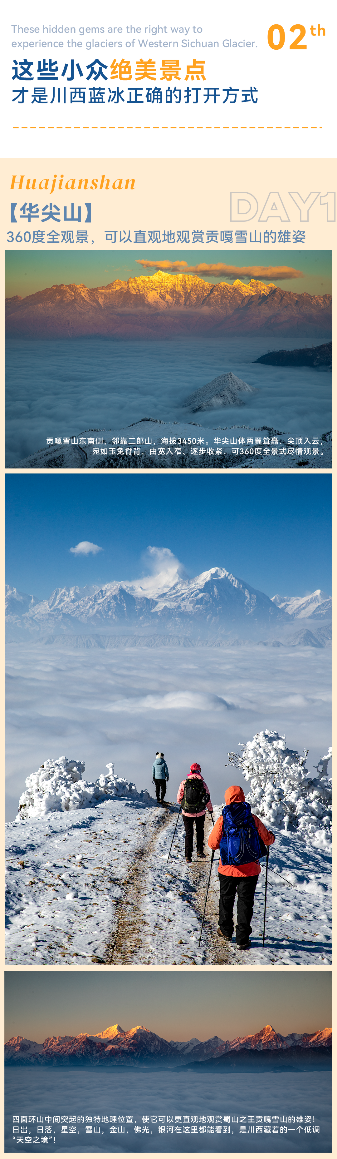 4、装备:提供冰爪、登山杖、雪套;
