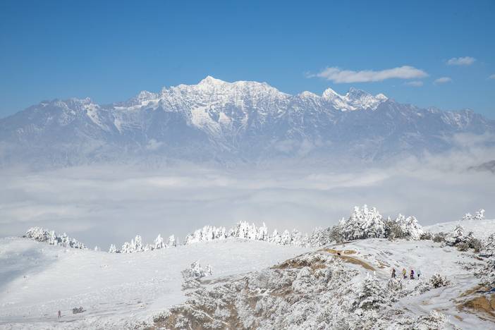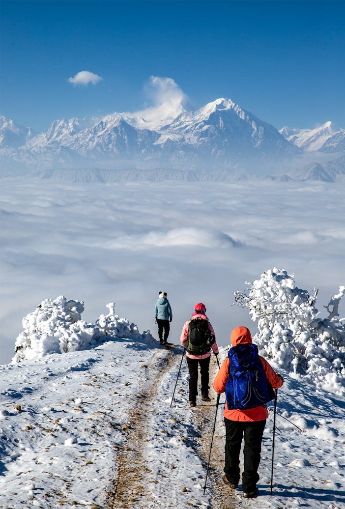 早上在集合点签到出发,请大家提前到达不要迟到!路上领队会组织活动,大家相互认识,互动小游戏。大概中午左右到达冷碛镇,大家AA吃饭后乘上山,车程约1小时,到达大草坪,这里是徒步起点,大家整理行装,来个大合照,徒步出发。沿路风景秀美,贡嘎群山就在我们身后伴随着我们,全程信号覆盖,可以尽情的拍照,朋友圈刷屏,运气好能在山上看云海云瀑,景色相当震撼。