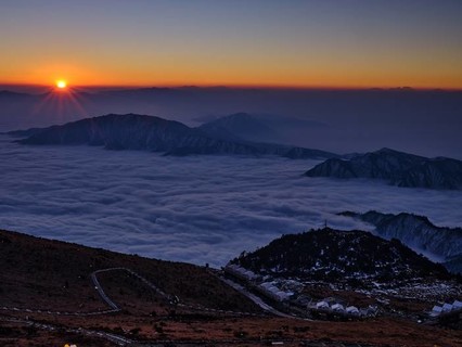 牛背山位于四川省雅安市荥经县境内与泸定县交界,属二郎山分支,是青衣江、大渡河的分水岭,山顶海拔3666米。四面环山中间突起的独特地理位置,使它获得360度全方位“中国最大的观景平台”和绝佳摄影圣地的美称。