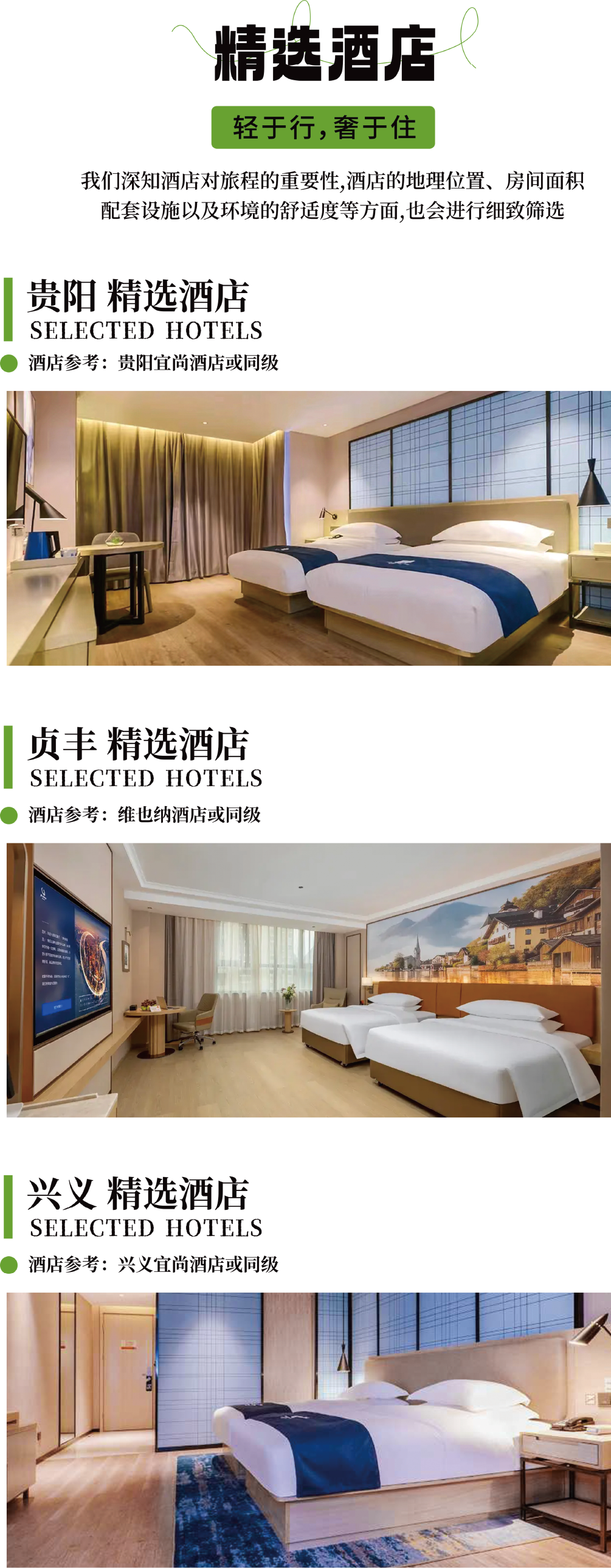2、住宿:行程所列住宿(贵阳1晚+贞丰1晚+兴义2晚酒店标间);