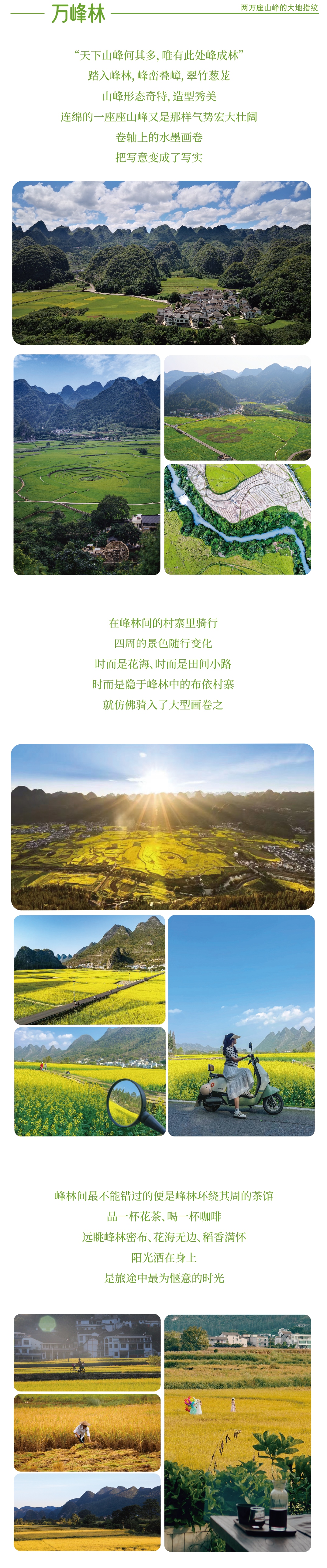 5、骑行:万峰林骑行体验,含两轮电动车使用:成人每人 1 台电动车;未成年人不单独提供电动车,须与家长共乘 1 台;