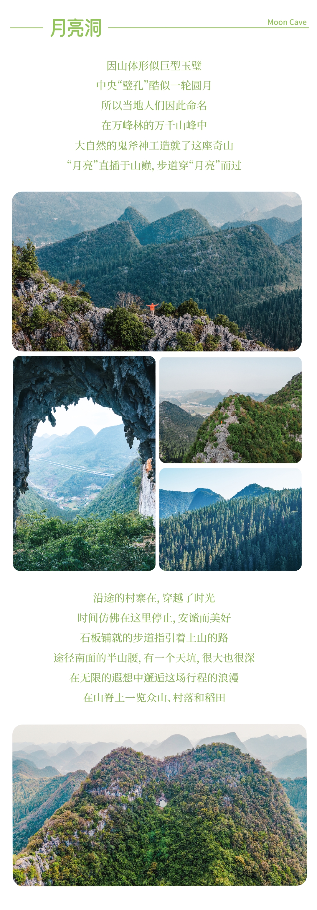 ① 今天的徒步坡毛山3.5公里(环线)累计爬升约280米,以喀斯特地形风貌风光为主,全程均为有修饰的山路、山脊路段。万峰林骑行体验,含两轮电动车使用:成人每人1台电动车;未成年人不单独提供电动车,须与家长共乘1台。