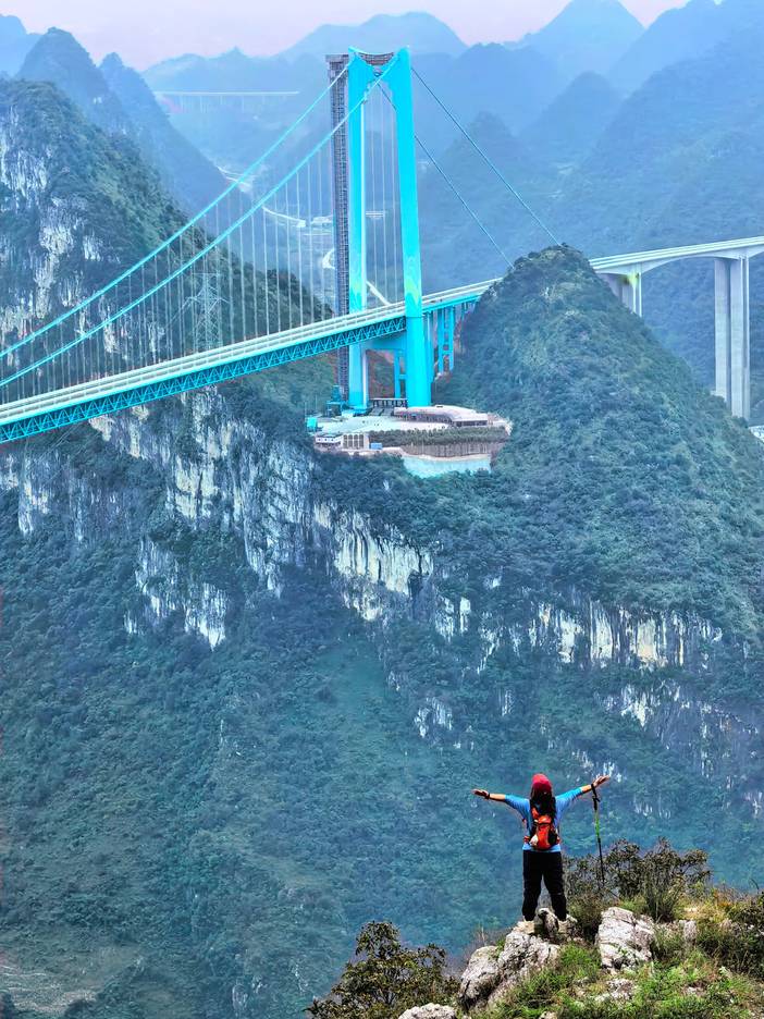 早餐后乘车前往【花江大桥】,这里是北盘江峡谷的视觉焦点。热身起步,徒步穿越村落、田园、山谷与山脊,多角度欣赏大桥雄姿与峡谷瀑布。中午在视野开阔的山头共享户外午餐(请自备干粮)。下午沿北盘江岸山脊徒步,与“横竖皆壮丽”的花江大桥合影,沉浸于喀斯特地貌的层次之美。傍晚乘车至贞丰县城入住,晚上可相约AA晚餐或自由寻味。