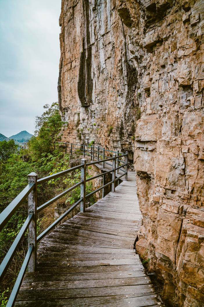 ① 今天的徒步路程约18公里(穿越路线),累计爬升约为700米(下降约400米),以峡谷地形风貌风光为主,全程基本都是简易栈道山路,有多个可下撤的点。