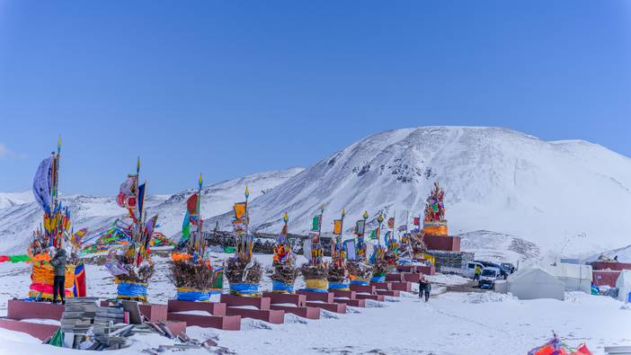 背景文化:阿尼玛卿为藏传佛教四大神山、格萨尔王寄魂山,地处青海玛沁。转山是藏族千年朝圣习俗,信徒顺时针绕行祈福消业,藏历马年转山功德倍增,一圈可低13圈功德福报,融山神崇拜与民族信仰于一体。