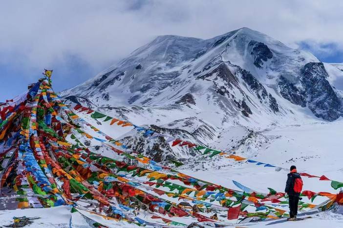 2、纵深穿越阿尼玛卿雪山腹地,一路冰川群峰、高山草甸、玛尼石经墙、秘境石林轮番上演,沉浸式领略黄河源高原极致野性风光。