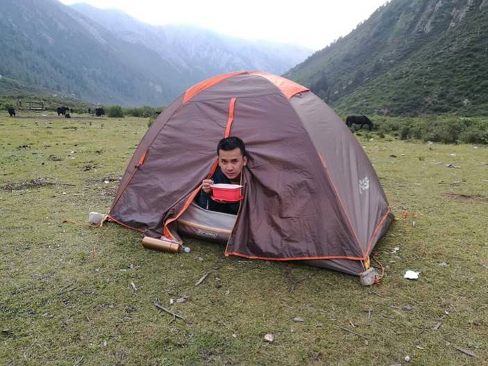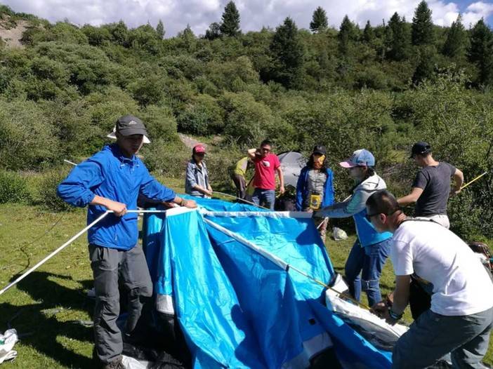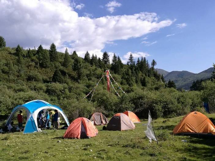 经过一天的乘车终于到达今天的行程终点--咔咔沟营地。