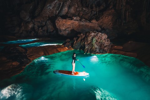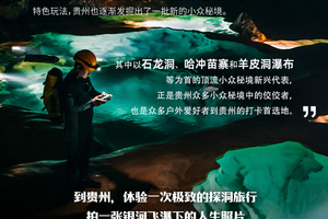 早餐后,从酒店打车到石龙洞交通车集合点,乘车前往石龙洞。抵达洞口后,穿戴安全装备,在专业领队的指导下练习桨板,熟练后划板进入洞穴,感受地下世界的神奇与震撼。中午在洞穴中段简单吃些路餐。下午一路经过无数个绝美地下瑶池,最后到达经典水潭打卡位置,在洞内驻点摄影师的指导下,拍摄惊艳朋友圈的旅行大片。游玩后出洞乘车返回贵阳,今日住宿贵阳。