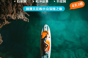 4、体验:D2石龙洞探洞(包含个人装备:头盔、头灯、湿衣、桨板、防水背包、救生衣、手机防水袋,公共装备:水下灯光、户外救生毯、应急医疗包等,公共设施:换衣间、免费淋浴和存包服务,桨板教练和附赠洞内定点摄影);