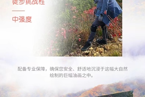 3. 本产品属于秋季产品,秋景确定时间不确定的,正常是11月份秋景,但是也有提前或延后情况,游玩时请合理对待实际景色;