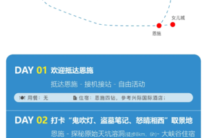 备注:如果下大雨,徒步路线无法行走,领队有权根据情况调整第2-4天的行程顺序;如考虑到安全原因,则有权调整为恩施景区,参考梭布垭石林景区。