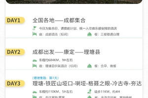 (理塘集合为成都集合日的第二天,如06月13号成都集合,则理塘集合日为06月14号)
