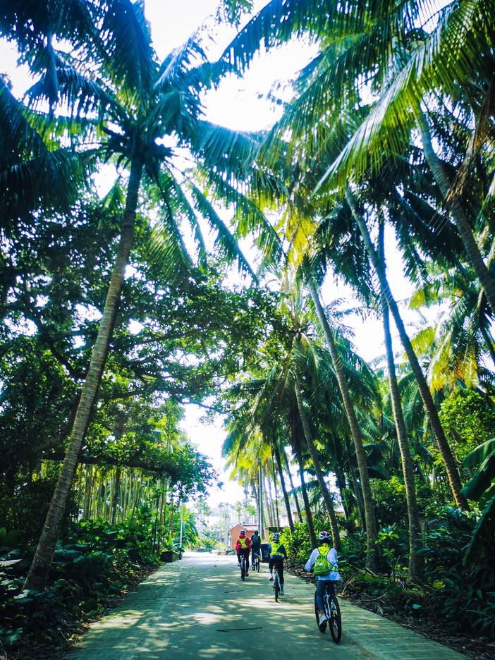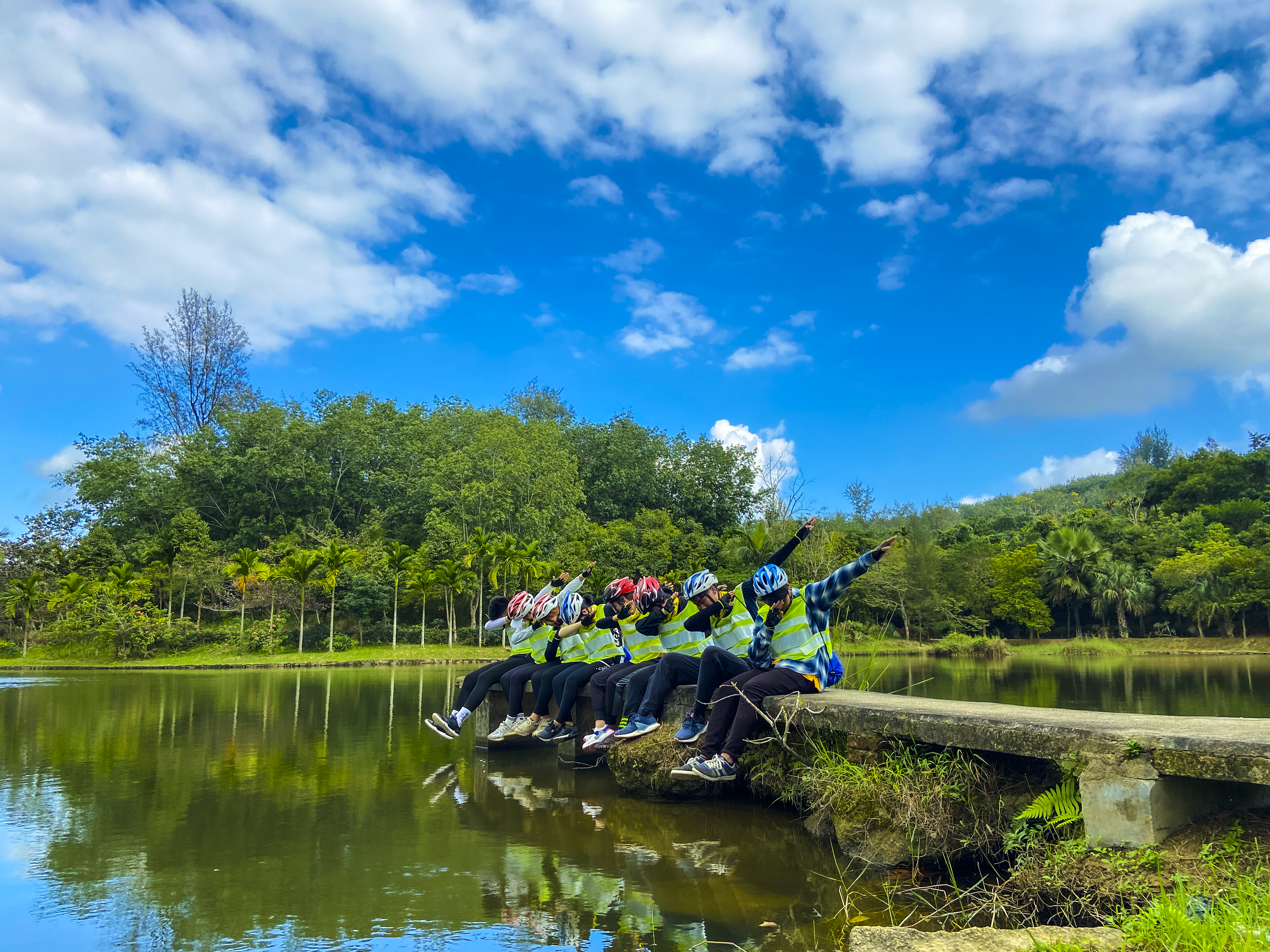 今天骑行路段是东线最精华的路段,上午骑行山钦湾及正门岭大桥,经跨海大桥驶入英豪半岛,下午穿越整个大花角自然保护区,在南燕湾观海亭眺望南海,感受海岸骑行的畅快。当天的高潮则是热带花园国家绿道骑行,穿梭在热带植物王国里,环山绕水的美景让人流连忘返,当晚入住侨乡小镇兴隆。