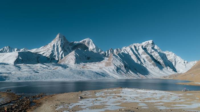 早餐后从康马出发,前往喜马拉雅山北坡的高原淡水湖——冲巴雍错。游玩后前往吉楚锥科雪山徒步,沿土路从停车点走到措朗湖边,可近距离感受雪山的雄伟与壮丽。晚上入住岗巴县,可以品尝当地有名的羊肉。