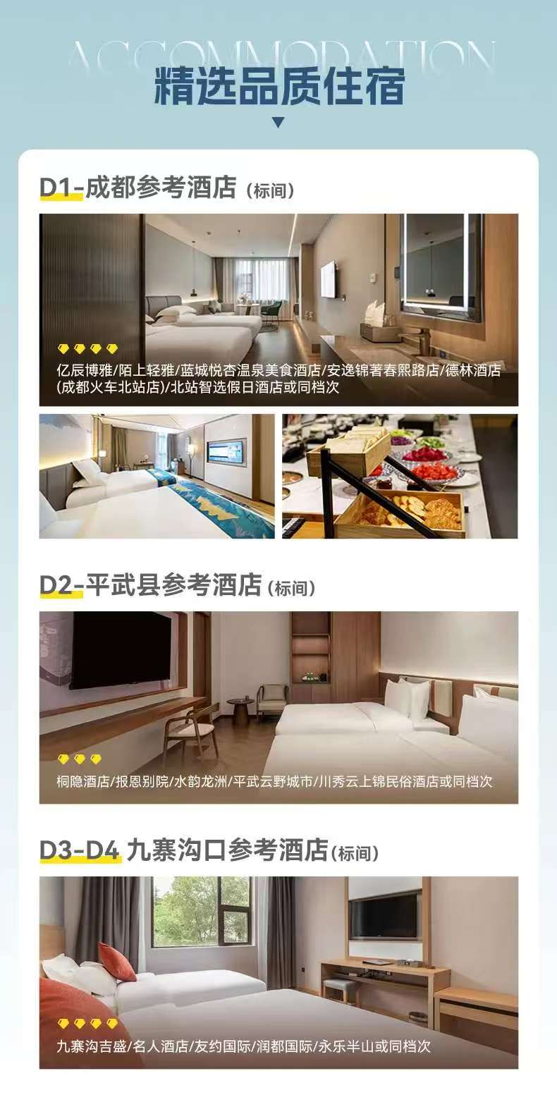 2.到酒店后报“星月九寨+姓名”拿房,房费已付,如需房间押金请自理;