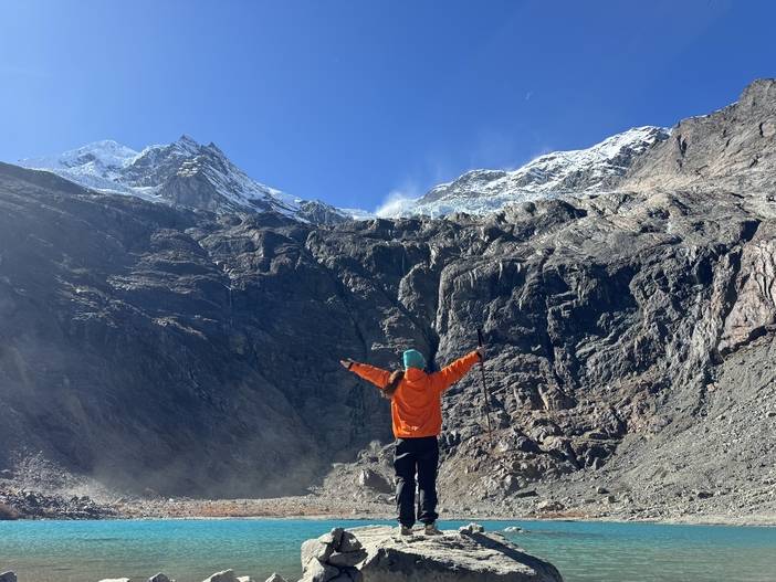 早餐后出发,开启雨崩徒步,今天从村里徒步出发,先穿过村口的沙棘林和原始森林,继续前行就到达笑农大本营。笑农大本营原是中日联合登山队攀登卡瓦格博峰的营地,我们在这里午餐,休息补给后继续往前就抵达冰湖。在冰湖打卡游玩后原路返回雨崩村,结束这一天的徒步。