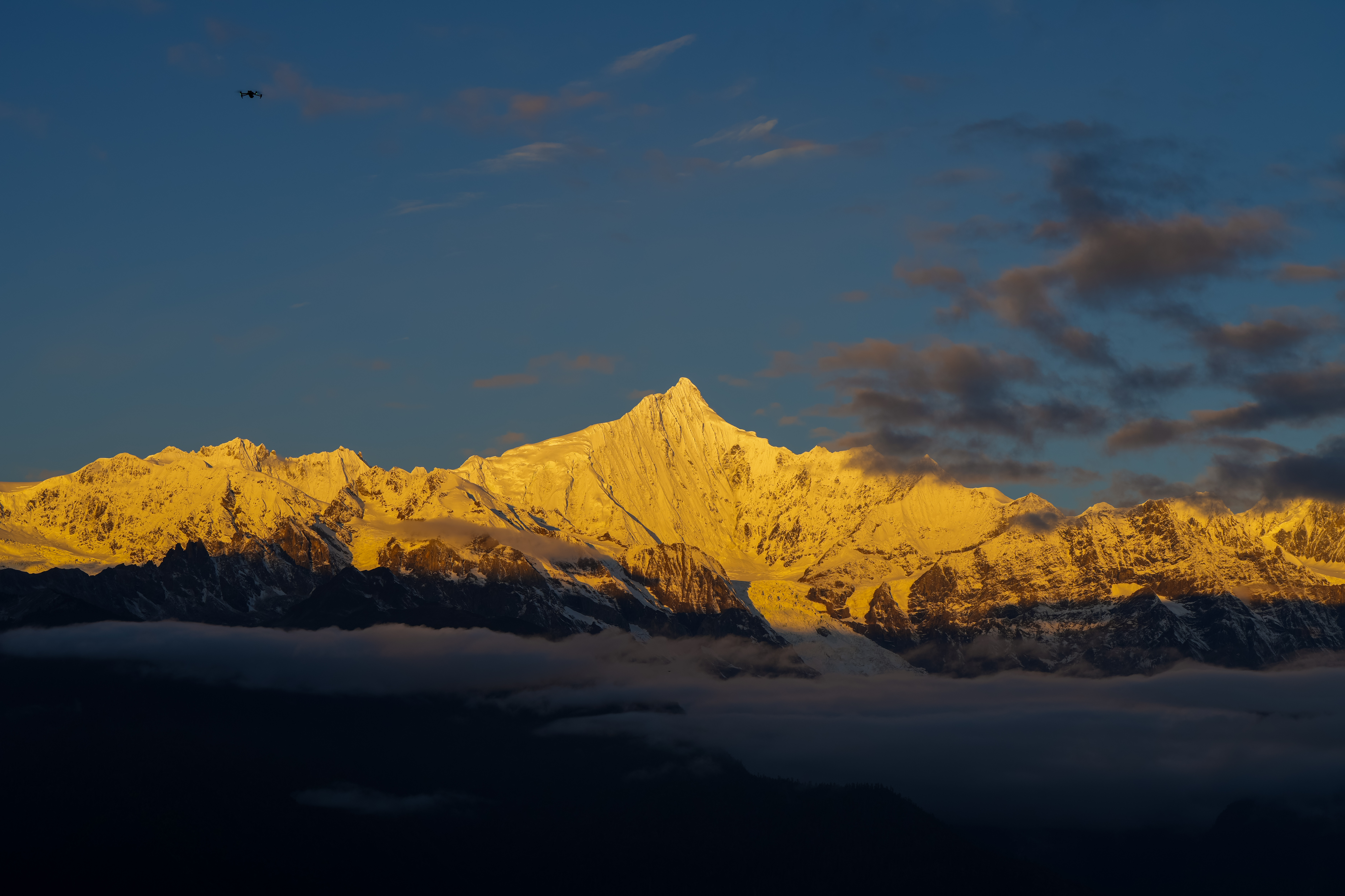 梅里雪山处于世界闻名“三江并流”地区,主峰海拔6740米,是人类至今未能征服的“处女峰”,是众山之神。特殊的环境和气候,使梅里雪山常年云雾缭绕,即使冬季无雨的日子,当地居民都很少能见到她的真容。能看到梅里的日照金山,更是很多人一辈子的心愿。