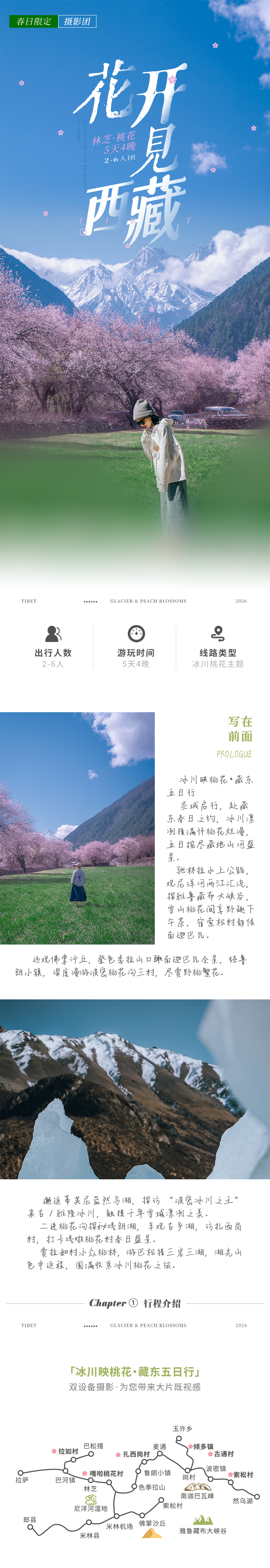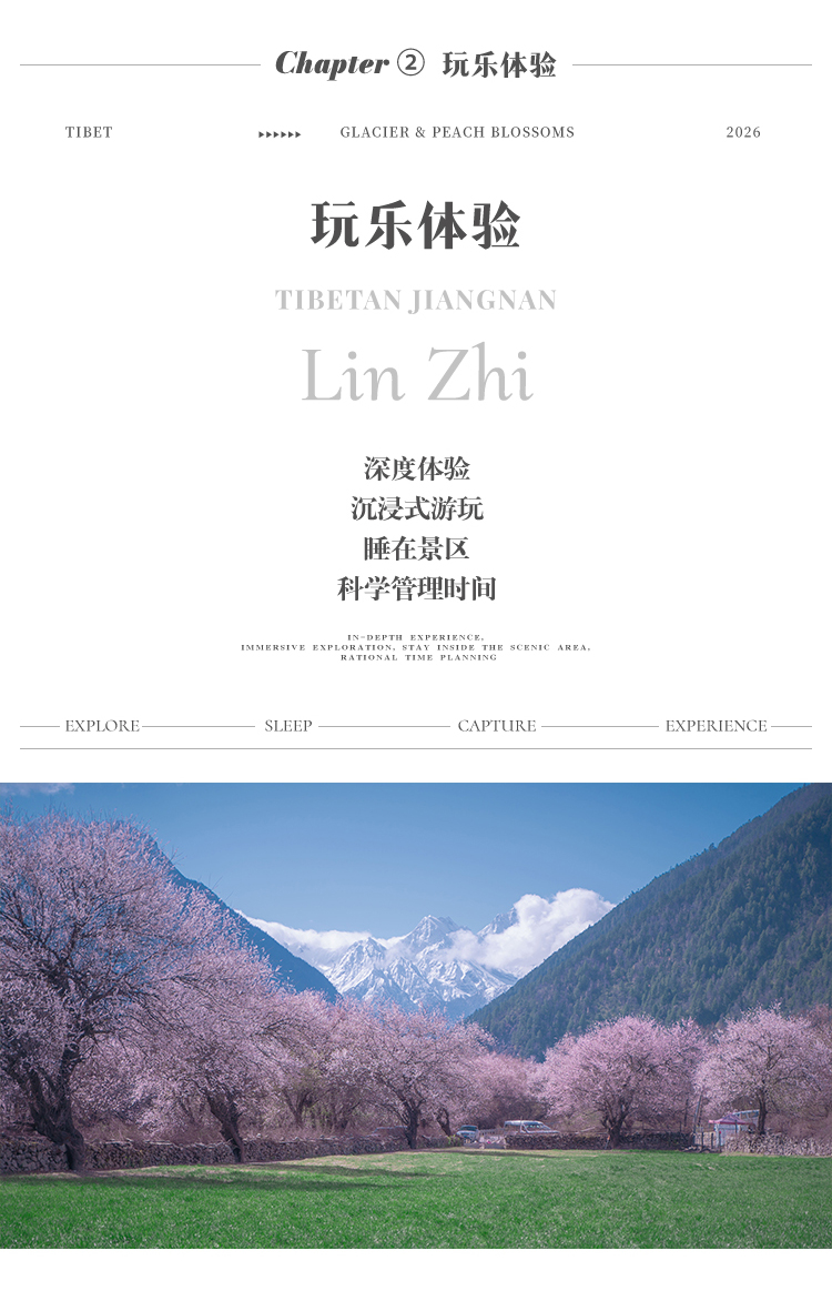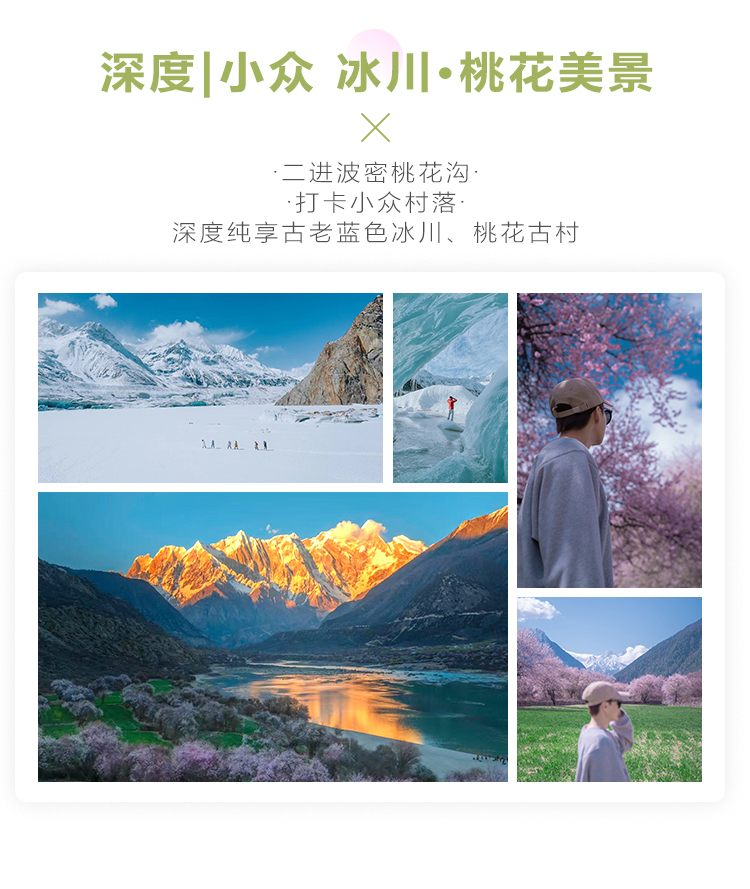 【全维度“桃花盛宴”】不止打卡,更重沉浸,深入波密桃花沟腹地(如纳村、倾多镇、古通村)和嘎朗湖畔秘境,避开人潮,在雪山、湖泊、藏寨背景中独享十里桃林。