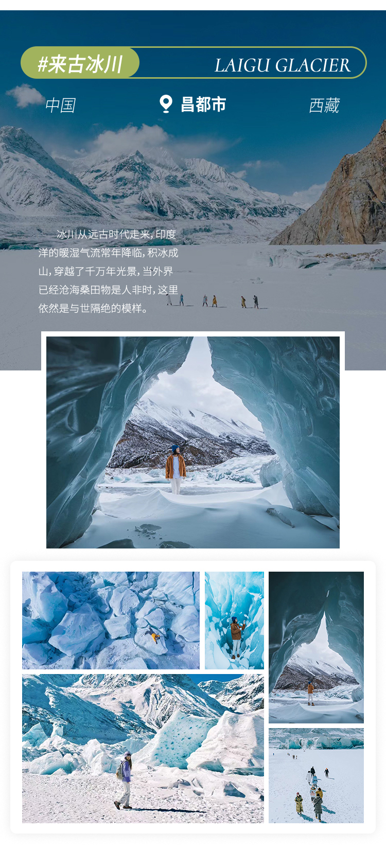 早餐后,乘车前往【然乌湖】,途中可远观【郎秋冰川】。春日的【然乌湖】的蓝与绿,和着碧蓝的湖水、白雪皑皑的雪峰,景色如诗如画。山顶则是终年不化、重叠起伏的雪山环抱,河道中许多岩石和小岛点缀其间,湖面上春季树影婆娑秋冬薄雾弥漫,它的美景都会使人如进梦幻之境。沿着然乌湖抵达来古冰川群。 沿途欣赏地形地貌奇特,风光旖旎。环绕然乌湖,后来到【来古冰川】,来古冰川并不是一座冰川,而是一组冰川的统称,包括美西、雅隆、若骄、东嘎、雄加和牛马冰川。这系列冰川从远古时代走来,穿越了千万年光景,当外界已经沧海桑田物是人非时,这里依然是与世隔绝的模样。冰川游玩结束午餐后返回波密县住宿。