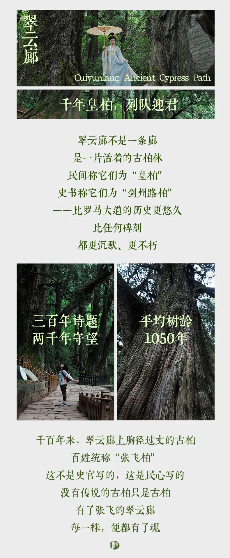 从汉阳铺出发稍作休整后,我们继续前往翠云廊景区。这里古称 “剑州路柏”,民间也称 “皇柏”,是沿蜀道人工栽植的行道古树群,也是目前世界上存世最久、规模最大、数量最多的人工行道古柏群落,极具历史与自然价值。
