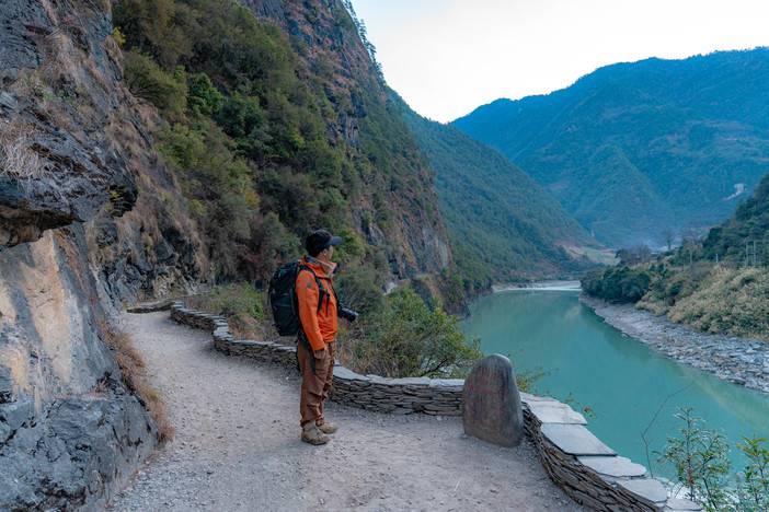 D4:丙中洛-滇藏交界处-秋那桶-雾里村茶马古道徒步-独龙江(纹面女)早餐后,我们正式踏上丙中洛的秘境探寻之旅。首先驱车前往滇藏交界处,感受一脚踏两省(自治区)的独特体验。随后,我们前往被誉为“中国最美的村庄”之一的秋那桶。原始的木屋、青稞架与教堂在山雾中若隐若现,构成一幅宁静的田园画卷。在这里,可以感受到怒族村落最纯粹的宁静与祥和。离开秋那桶后,开启寻找雾里村茶马古道的徒步。穿过朝红桥跨到怒江对岸后开始徒步,穿越一段悬崖之上的茶马古道,这也是唯一一条能通往雾里村的悬壁古道。雾里村,这个被称为“瑞士田园风光”的原始村落,三面环山、一面临江,古道险峻而壮美,走在其中,仿佛能听见历史的回响与马帮的铃声。离开雾里村,我们继续出发,前往独龙江寻访纹面女,纹面女是独龙族特有的古老文化传统,如今仅存的纹面女已为数不多。我们有幸的话,将走进她们的家中,聆听她们讲述纹面习俗背后的历史与传说,感受独龙族文化的独特魅力与即将消逝的传统。 餐饮:含早餐;午餐、晚餐自理住宿:独龙江客栈标间需时:行车约172公里,约4小时;徒步约5公里,约2.5小时;
