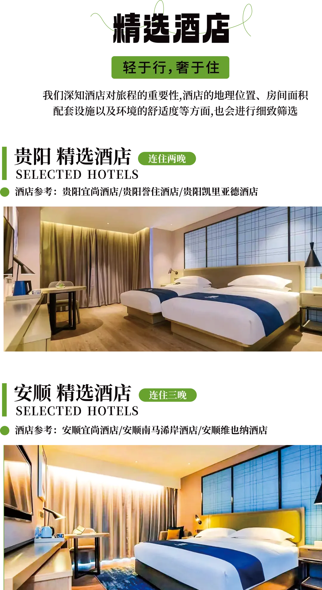 2、住宿:贵阳2晚+安顺3晚酒店(2人/间)