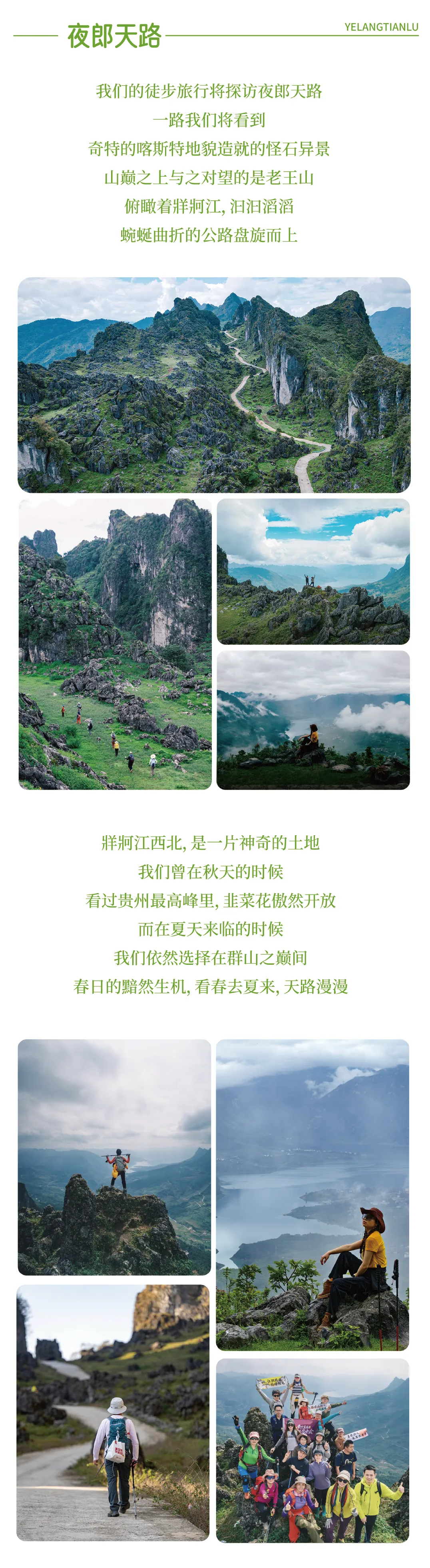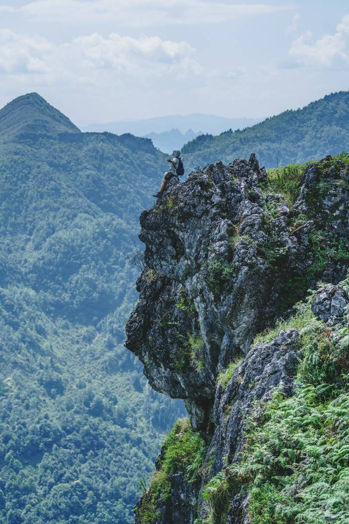 ①今天的徒步路程约10公里,海拔爬升为800米(下降约500米),以喀斯特地形地貌为主,需要走一段乡道和爬坡以及穿越蕨类灌木丛、山脊石林等。