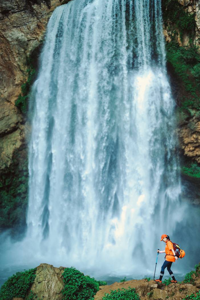 ①今天的徒步路程约8公里累计爬升约400米(下降约300米),瀑布溶洞峡谷风光为主,需要山路,有陡坡路段、雨季道路泥泞,需要穿防滑的鞋子和带备换衣服鞋子。
