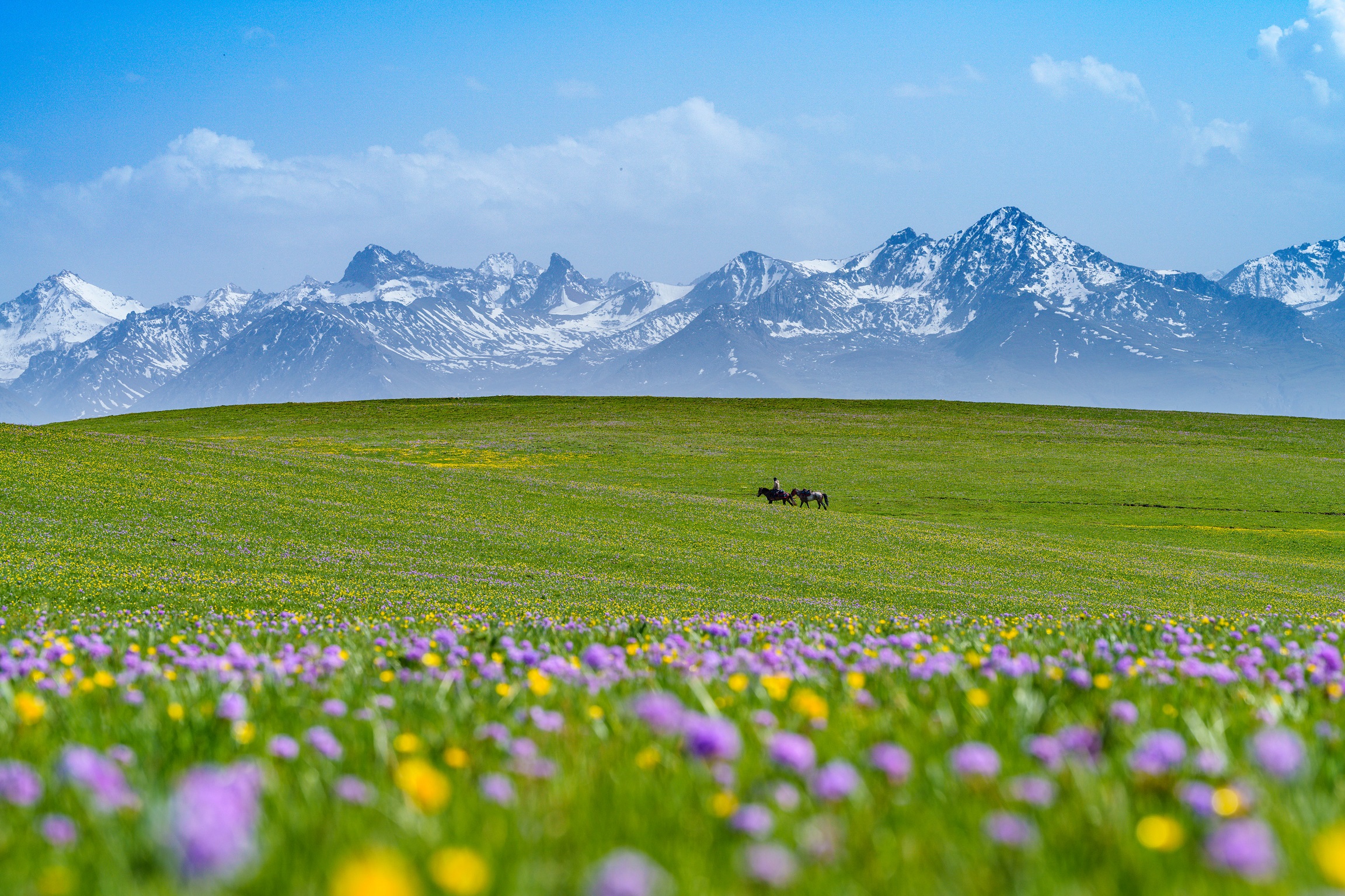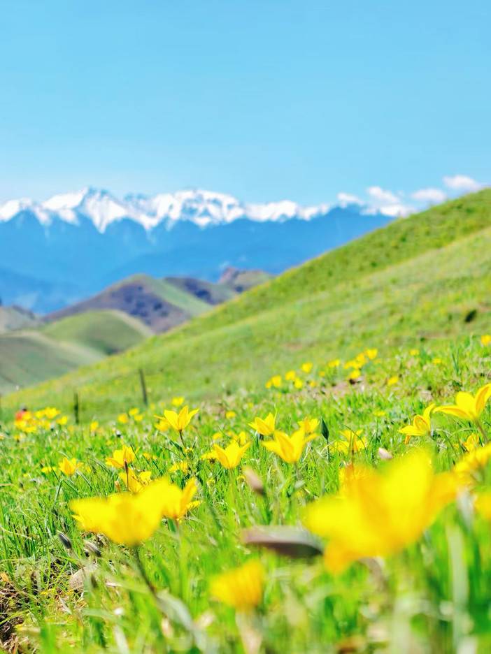 (1)5月开始迎接新疆的春季,在1000多米海拔的地方已经开始长出各种鲜花了,雪山、绿草、花海,层次分明,天山脚下的花海不可错过。