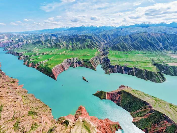 早餐后出发,行进在顶级的伊犁草原上,远处是天山山脉的皑皑雪峰,在阳光下闪烁着清冷的光;山腰是浓密的雪岭云杉,墨绿挺拔,如卫士般守卫着山谷;脚下是起伏和缓的翠绿草甸,像柔软的绒毯铺向远方;一条蜿蜒的恰西河如银色丝带,在谷底闪烁流淌,将整片画面串联起来。恰西画卷浓缩了伊犁河谷的精华,雪山、森林、草原、溪流、蓝天、白云完美融合,随手一拍都是壁纸级画面。傍晚入住库尔德宁。