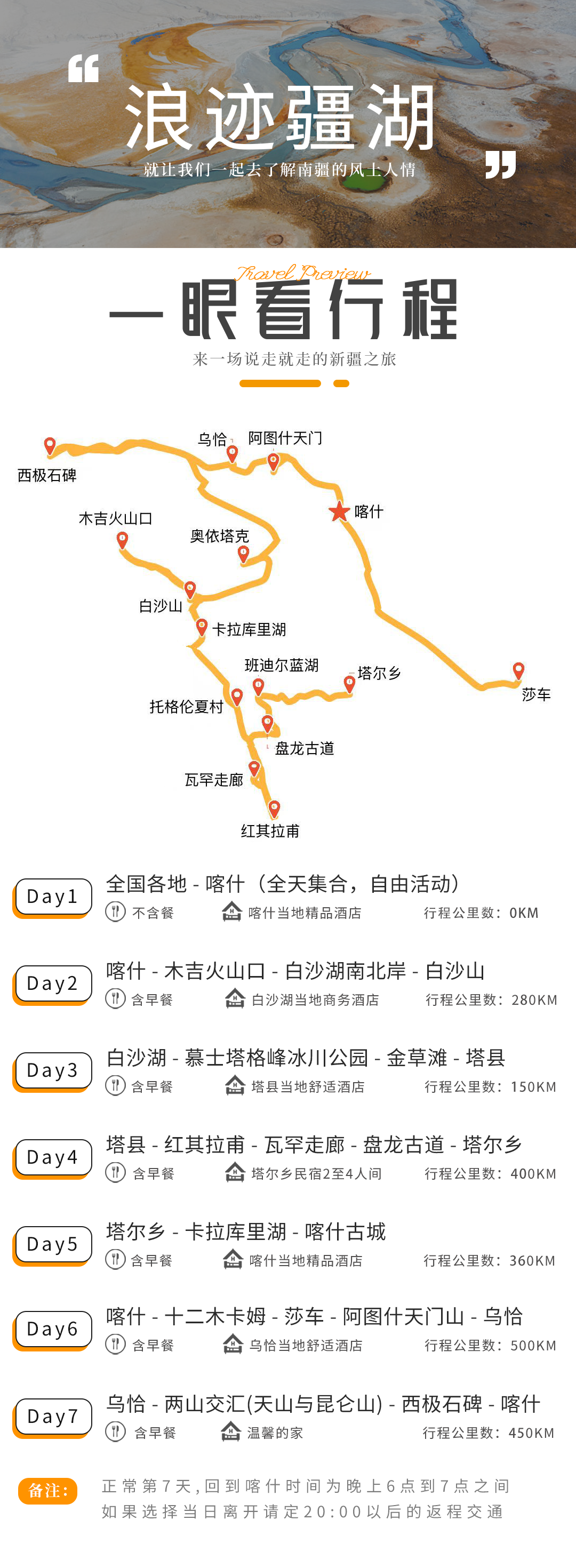 4、领队会在集合当日21:00前,以短信或微信通知次日集合时间、车牌号码,请保持手机通讯畅通。喀什市中心距离机场约10公里,距离火车站约5公里,市区出租车充足,出行便捷。