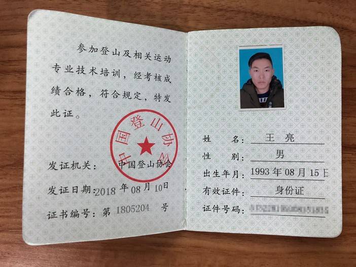 2013年下半年经过川登协的培训以及考核,获得户外指导员初级证书
